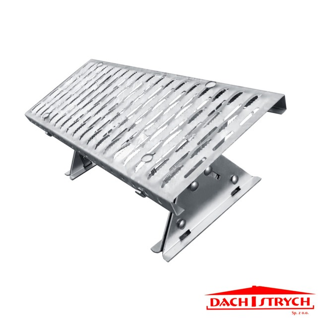 – wykonanego z blachy nierdzewnej, miedzianej lub ocynkowanej mocowania z regulacją, umożliwiającą dopasowanie całości do kąta spadku dachu,
