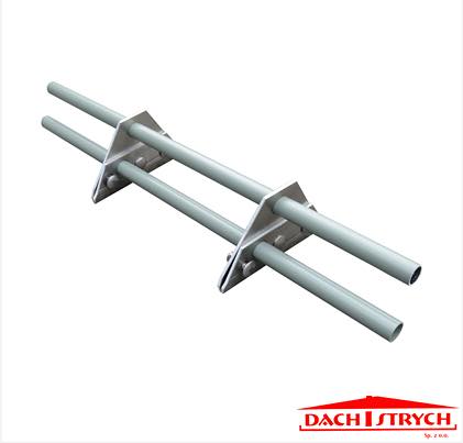 Zastawy śniegowe do dachów z rąbka stojącego podwójnego, dostępne w wersji pojedynczej (jedna rurka) lub podwójnej (dwie rurki równoległe).